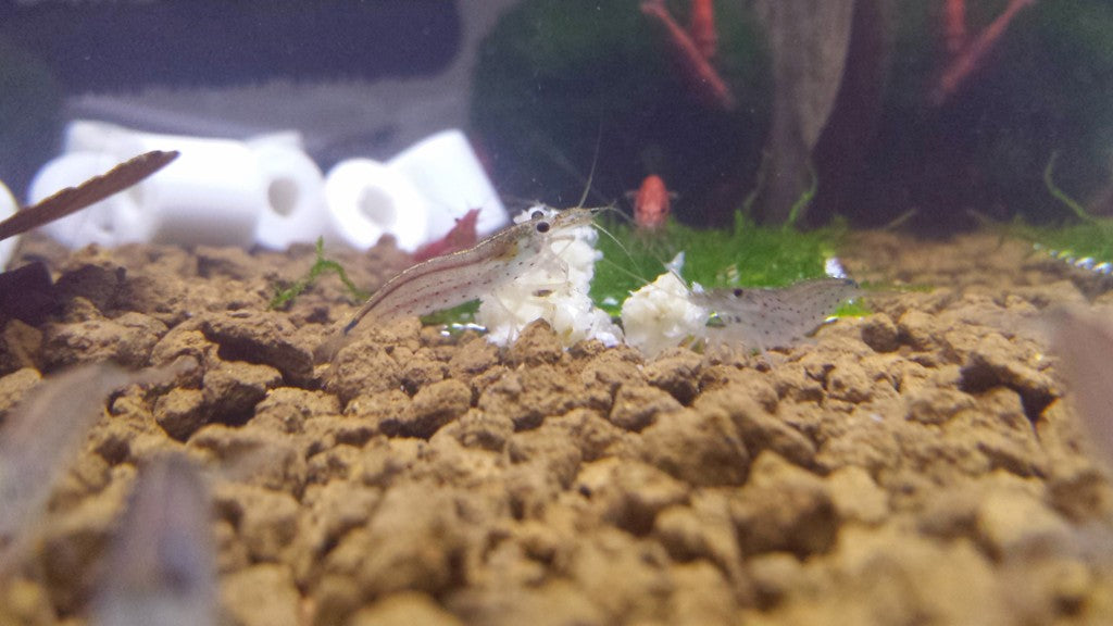 Amano Shrimp are the most adaptable shrimp in the hobby. They can live in nearly every water condition. They are peaceful and can live side by side with other dwarf shrimp species. They are known to be ravenous eaters and often make off with a big lump of food - take this into account when feeding.