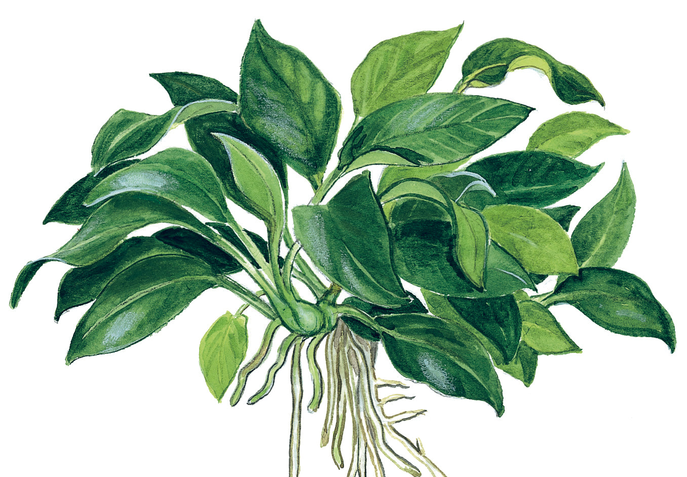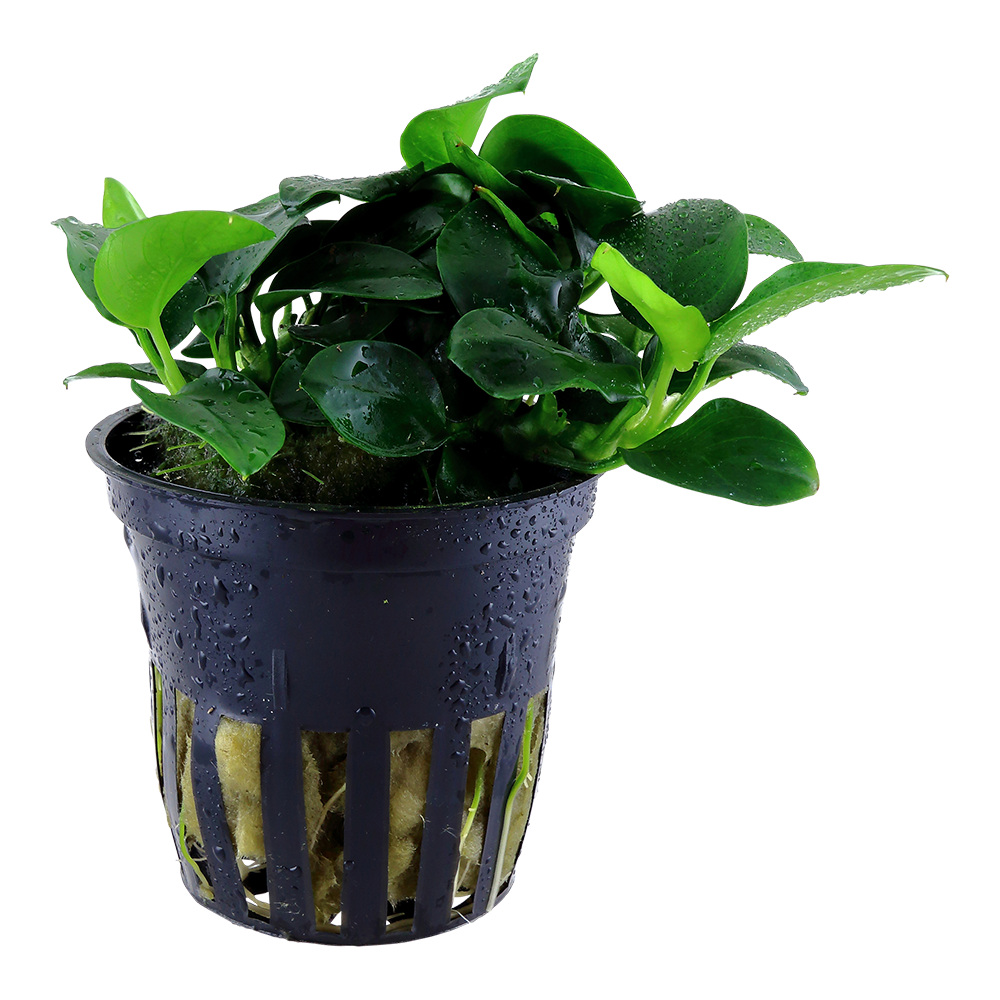 Anubias sp. ‘Petite’ is a mutation which appeared in cultivation at the Oriental aquarium plant nursery in Singapore. Grows very slowly, and can be difficult to keep in healthy growth. Stays less than 5 cm tall and with a rhizome from 5-10 cm or more. It is most decorative when attached to stones or roots, and like other Anubias should be attached with fishing line until it gains a hold. A speciality plant which is ideal for miniature landscapes in small aquariums.