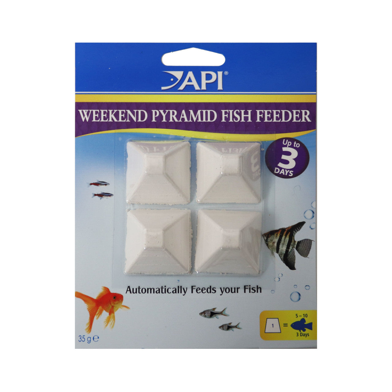 The API Weekend Pyramid Fish Feeder is the ultimate hassle-free solution for ensuring your fish are fed while you're away. This convenient feeder provides a consistent and reliable source of nourishment for your aquatic pets for up to 3 days.