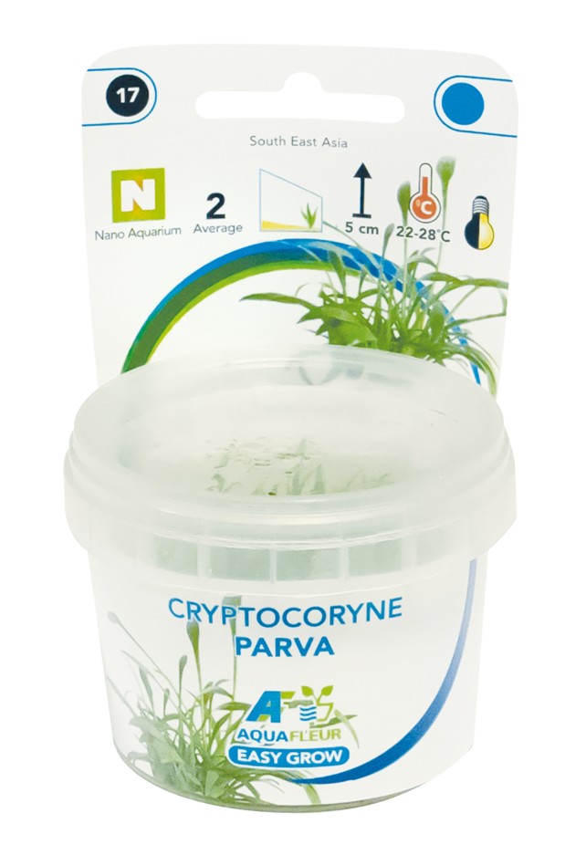 Cryptocoryne parva fromac Sri Lanka is the smallest of all Cryptocorynes (only 3-6 cm tall and a roset less than 5-8 cm wide). It is one of the few species that does not significantly change its leaf shape and colour depending on cultivation conditions. It needs more light than most other Cryptocorynes because it almost loses its leaf blade under water. So it must never be overshadowed by other plants. Individual plants should be planted a few centimetres apart, and after about six months they will form a cohesive low group of plants. Recommended for foreground planting.