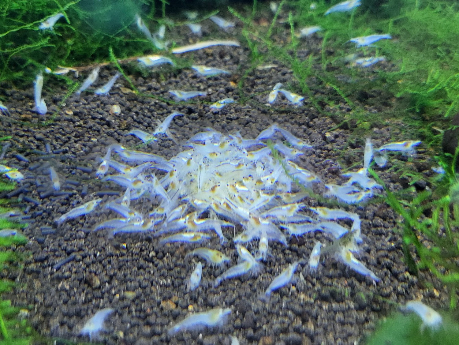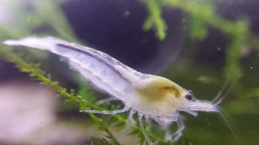 White Pearl Shrimp are lacking any colouration. These are very attractive on dark substrate where they stand out a lot.