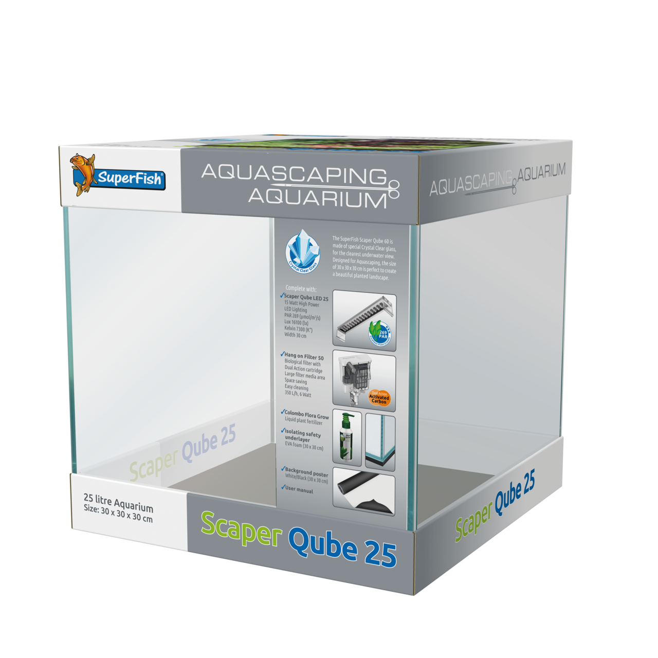 Superfish Scaper aquariums are open-top and made of Crystal Clear glass, which ensures a crystal clear underwater image. The three models have been specifically developed for Aquascaping, so the dimensions are perfect for creating beautifully planted underwater landscapes.