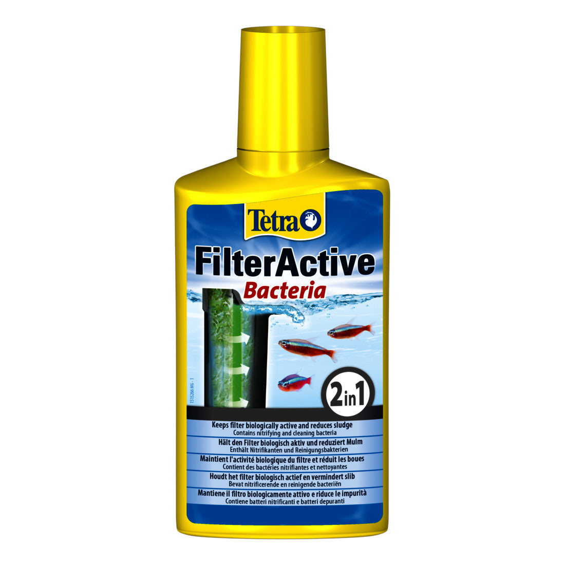 Tetra FilterActive keeps the filter biologically active and keeps it cleaner for longer with its natural action. It contains live starter bacteria and sludge-reducing cleaning bacteria that accelerate the biological degradation of ammonia, nitrite, fish waste, sludge, food and plant remains and filter mud.