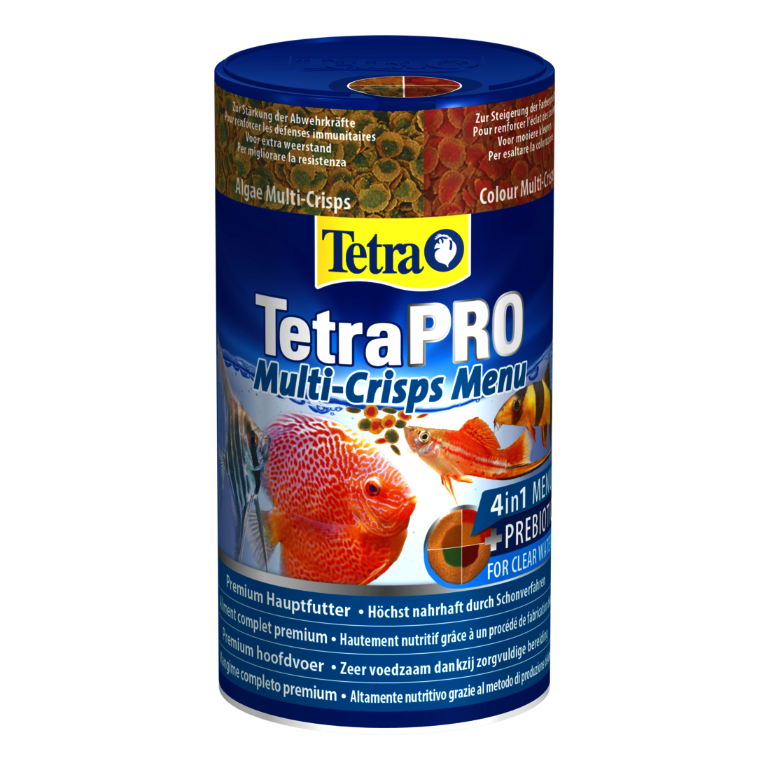 Give your fish a variety of premium nutrition with Tetra Pro Menu, a versatile and complete food option designed to cater to the dietary needs of all tropical fish. Featuring four distinct crisps in one convenient container, this advanced formula ensures your fish enjoy balanced nutrition with every bite.